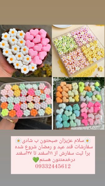 فروش انواع قند و نبات های گیاهی با انواع طعم ها، میوه ای رنگی، زعفرانی و.. جهت سفارش و دیدن مدلها ب شماره 09332445612پیام دهید. ارسال ب سراسر کشور