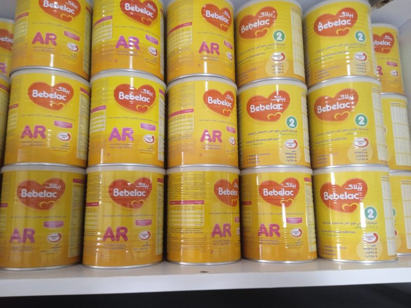 تعداد زیادی قوطی خالی شیر خشک همراه با قاشق مخصوص
