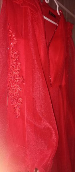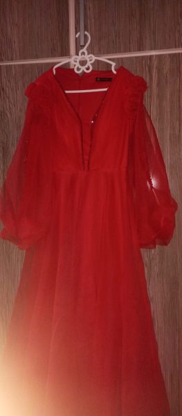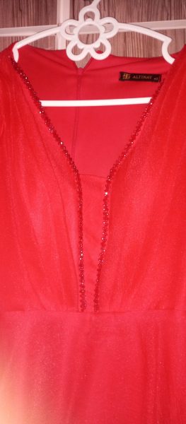 لباس در حد نو دو بار پوشیده شده بدون هیچ ایرادی تنخوری عالی و شیک و پوشیده مناسب هر نوع مراسمی رنگ قرمز