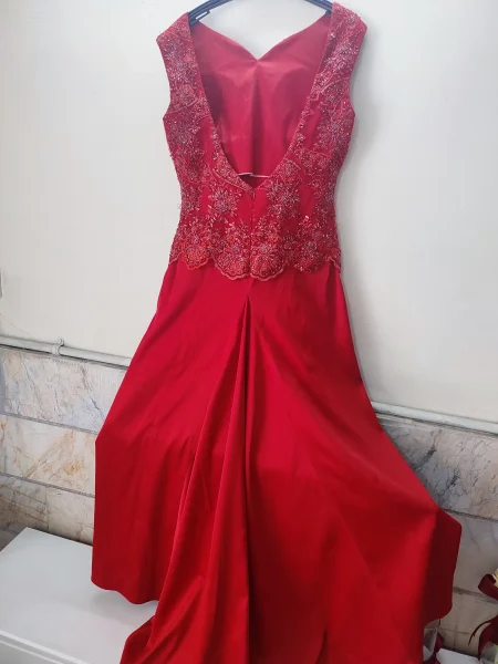 لباس قرمز ماسکی پشت بلند سایز ۴۰ تا ۴۴ میاید تن خور خیلی عالی دارد قیمت ۲۷۰۰