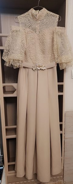 لباس مجلسی عروسکی تن خور فوق لاده شیک وعالی رنگ نباتی یکبارپوشیده شده