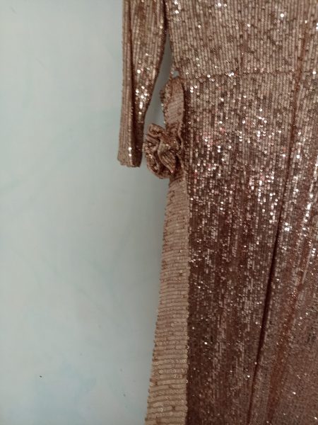 رنگ مسی یا طلایی کار شده با پولک جنس کشی از سایز 42تا46اندازه میشه