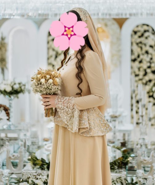 سایز بالاتنه لباس 38 هست ولی دامن باز هستش. اگر تا سایز 46 هستید ولی بالاتنه کوچکتری دارید هم مناسب شماست.جنس لباس از کرپ با کیفیت هست و روی تور سر، بالای دامن و آستین ها از دانتل استفاده شده.لباس رو پیش یک خیاط خوب دوختم و فقط شب عقدم استفاده کردم. فقط پیام دهید. تماس پاسخ داده نمی شود