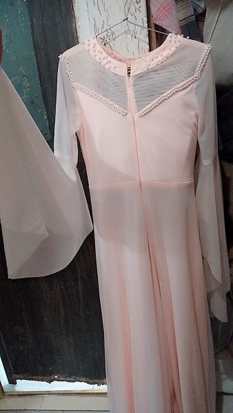 سلام لباس مجلسی کاملا نو هست یکبار بیشتر تن نشده شاین دار هست تور هاش آستین خفاشی خیلی شیک هست تو تن