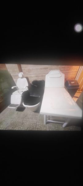 دو عدد صندلی سفید و تخت ماساژ همگی یکجا به فروش میرسد