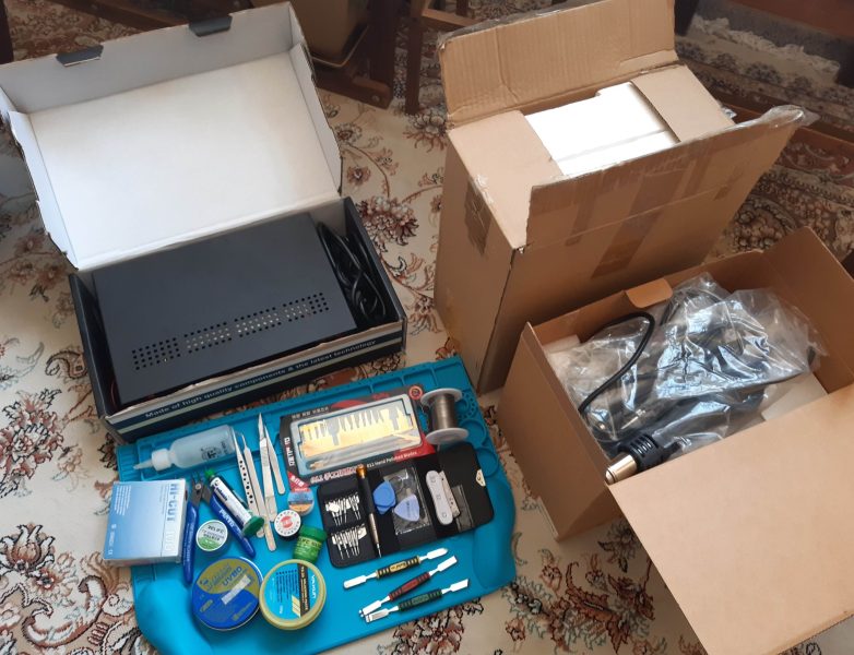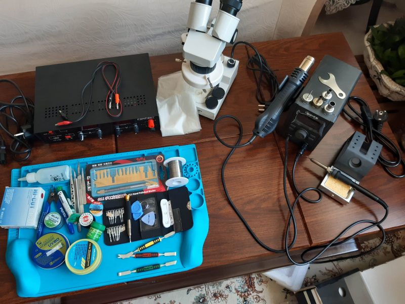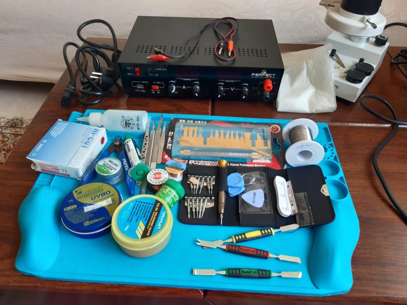 ●خمیر قلع ، ●سیم لحیم ، ●خمیر فلکسی (☆چسبی مخصوص هارد و ☆ساده )، ●چسب uv ، ●لامپ uv ، ●پنس (۲ مدل ☆سر صاف و ☆سر کج) ،