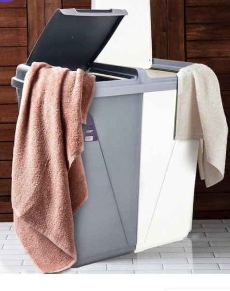 مارک vielot سبد لباسشویی دو محفظه خاکستری سفید 90 لیتری