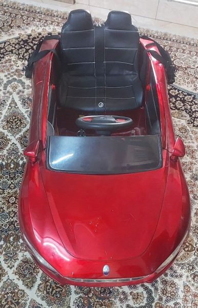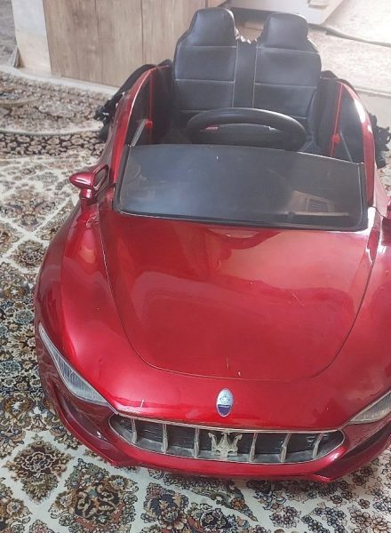 ماشین شارژی مازراتی دارای آهنگ خودماشین و رم خور.حالت گهواره هم داره.خط و خش روی بدنه.باطری سالم.تحمل وزن تا ۳۰کیلو.