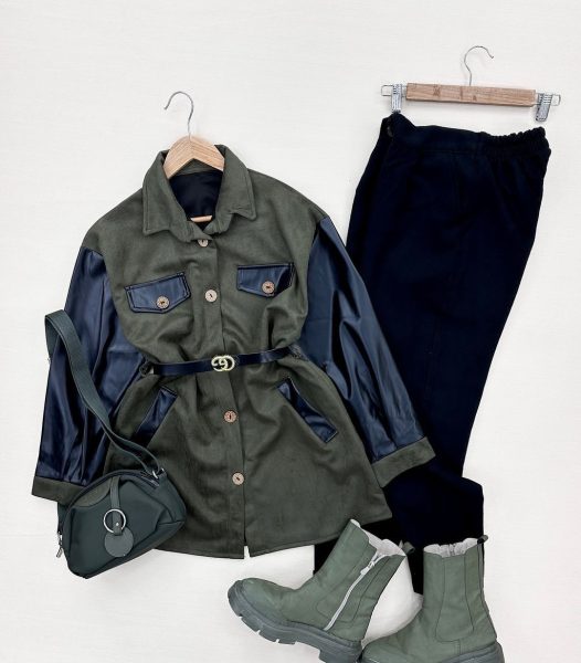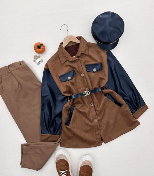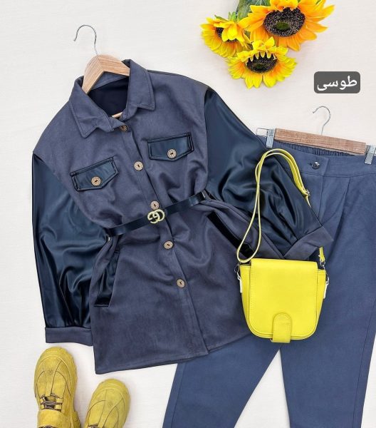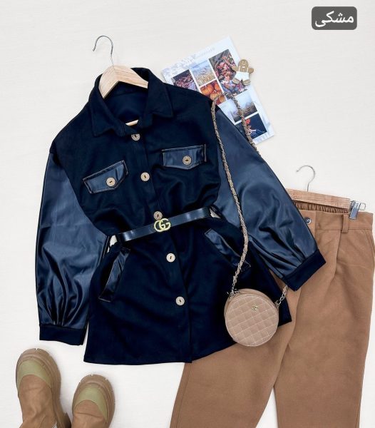 نام : مانتو آستین چرم سویت  + کمربند چرمی