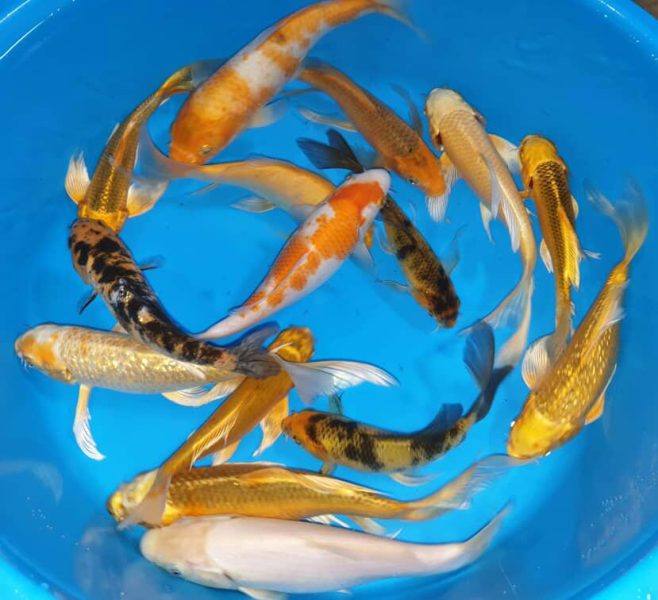 تعدادی ماهی کوی رنگارنگ شاداب و زیبا و اصیل در پکهای مختلف و سایزهای مختلف برای فروش میباشد.