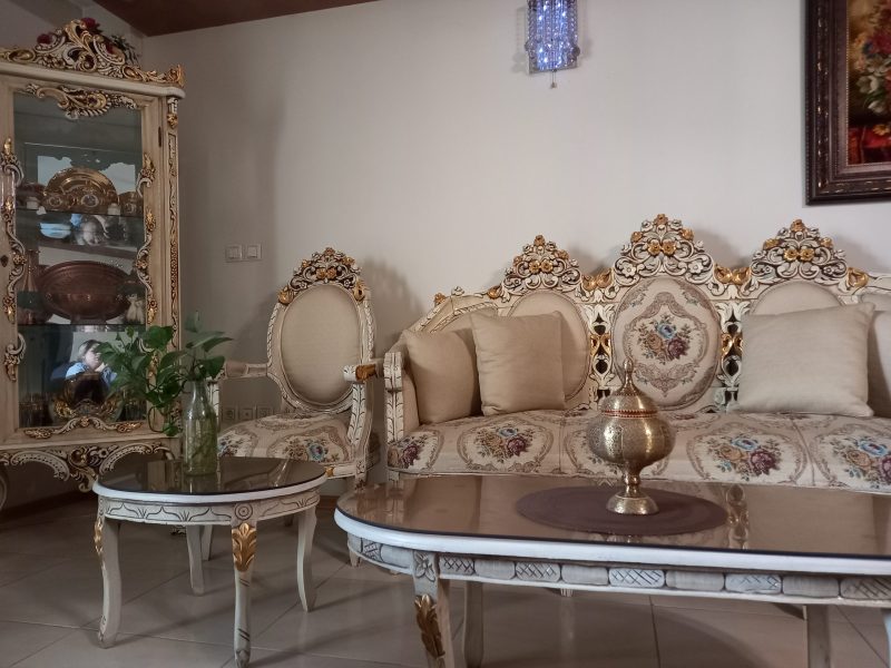 مبلمان استیل ۹ نفره رنگ و روکش شده با پارچه مخمل اعلا