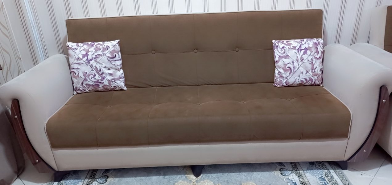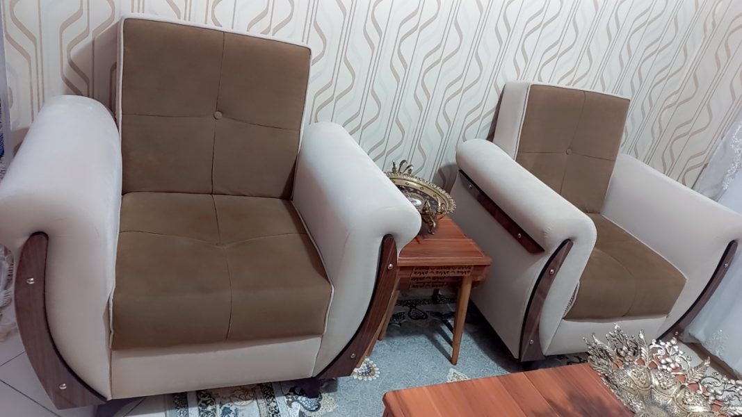 مبلمان راحتی با جلو مبلی های عسلی در حد نو تخفیف هم داده میشود