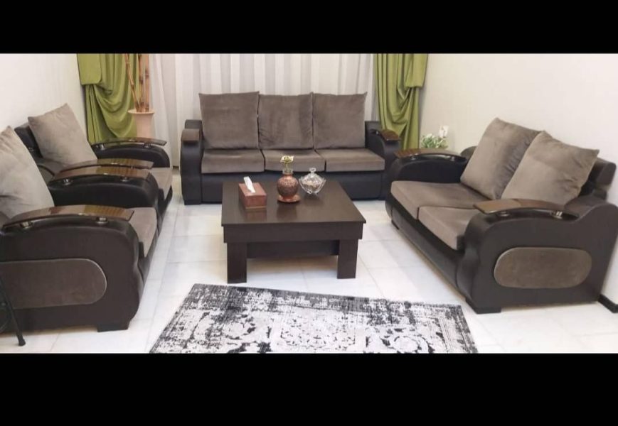 یکدست مبل ۷ نفره کاملا سالم جنس بدنه چوب و چرم جنس تشک ها مخمل زیپ دار قابل شستشو و میز جلومبلی در سایز ۸۰ در۸۰ کشو دار کاملا سالم بدون خط و خش یک میز تلویزیون کاملا سالم و بدون خط و خش