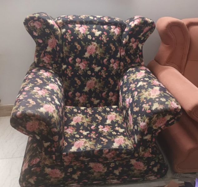دو تا تک نفره به رنگ مشکی با گل های صورتی و سه نفره و دونفره با پارچه صورتی