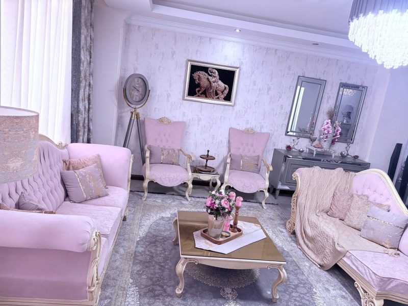 🔹 رنگ پارچه: صورتی ملایم (مخمل/کلاسیک) – کاملاً ست