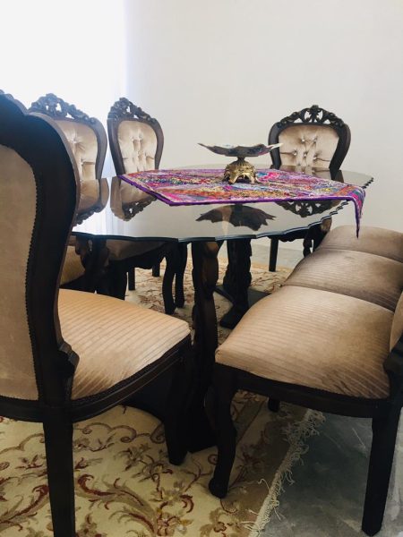 مبل ۹نفره همراه جلو مبلی و میز ناهار خوری ۸ نفره