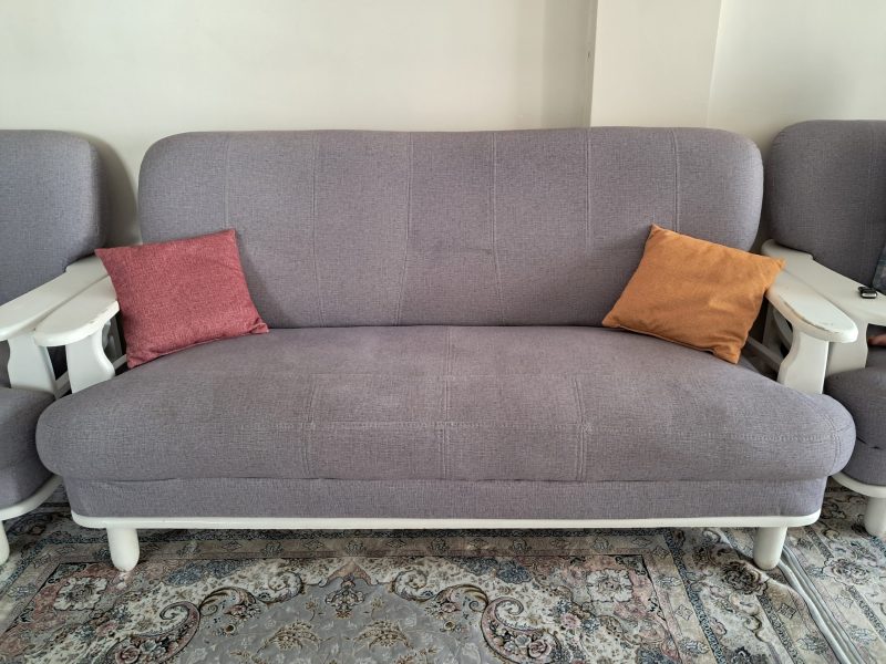 دستهی یکی از مبل ها کمی زخمی شده اما نشیمن ها کاملا سالم هستن.