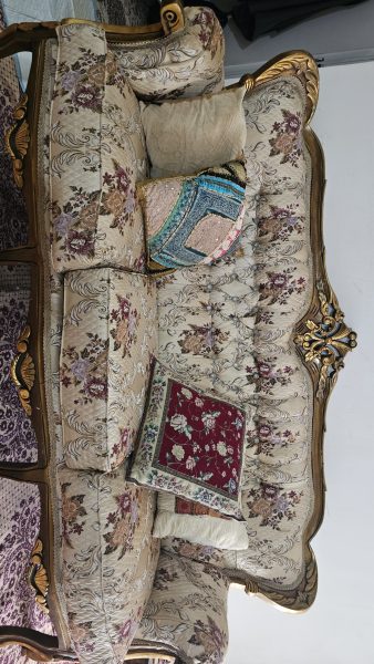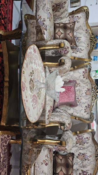 استیل 7 نفره کاملا نو – فوم سرد- پارچه گلدار ترک همراه با میز شیشه ای وسط و دو میز عسلی همراه کوسن.مناسب جهیزیه برای عروس خانوم ها
