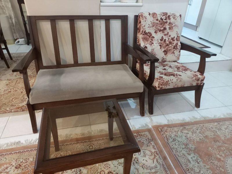 مبل هفت نفره ، یک عدد میز و دوتا میز کوچک تر[عسلی] از چوب راش … رویه های مبل قابل جدا شدن و شست و شوی جداگانه هست …..