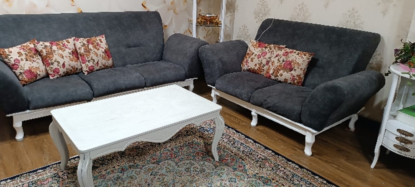 مبل راحتی تمیز وسالم 7نفره میزوسطو3تاعسلی دارم بوفه میزتلفن سفید تمیزسالم