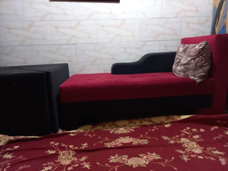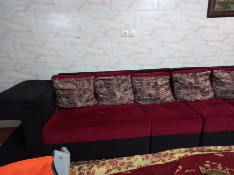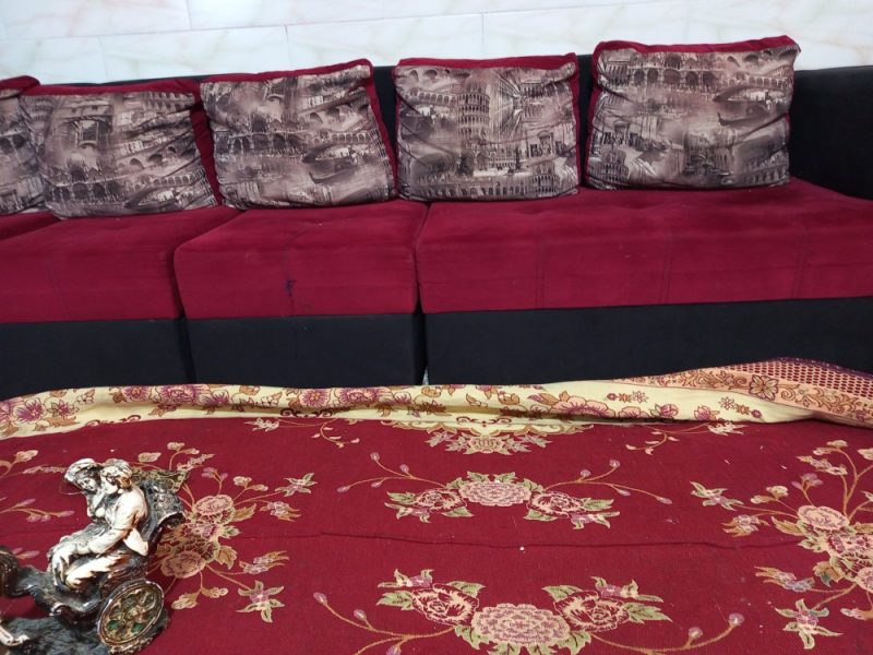 مبل راحتی تمیز دارای میز عسلی و چهار میز کوچیک