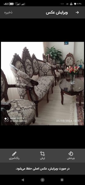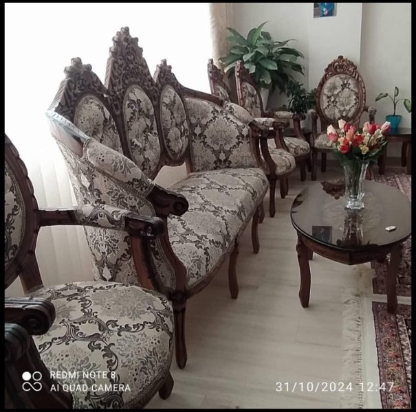 مبل سلطنتی مدل فرحی ۹نفره تمام چوب سالم و تمیزکف مبل فوم سرد سی کیلویی هست بدون خوابیدگی کفی مبل ،پارچه مبل بافت یزد هست ،دارای یک عدد میز وسط کنده کاری شده همراه با دو عدد عسلی با رویه های شیشه به دلیل جابجایی ونبودن جا به فروش می رسد با خریدار واقعی کنارمیام