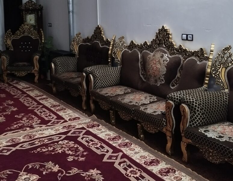 مبل سلطنتی هفت نفره همراه با میز عسلی درحد نو به علت جابه جایی