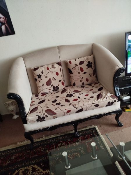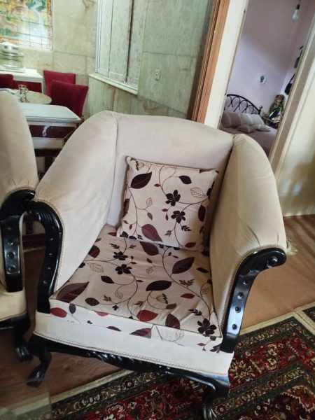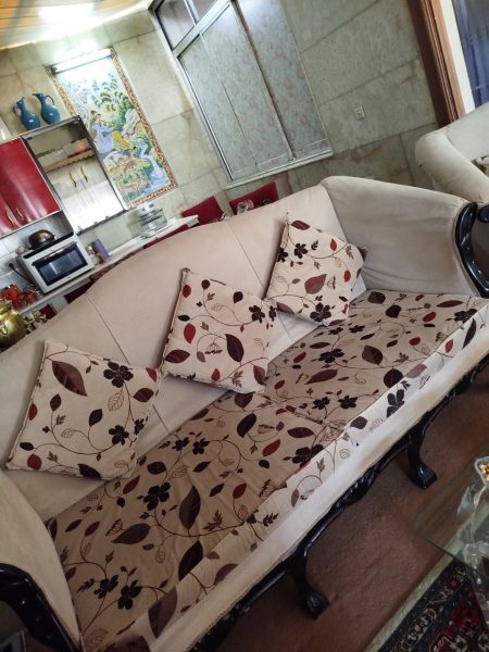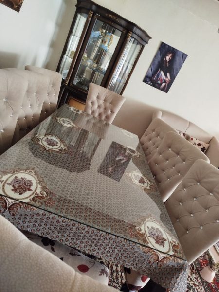 مبلمان نه نفره ،و غذاخوری هشت نفره ،جنس پارچه ترک ، تهیه شده از چوب راش ، بسیار مقاوم و راحت ، جنس پارچه ضد لک و ضد چروک ، استفاده شده ب مدت سه سال
