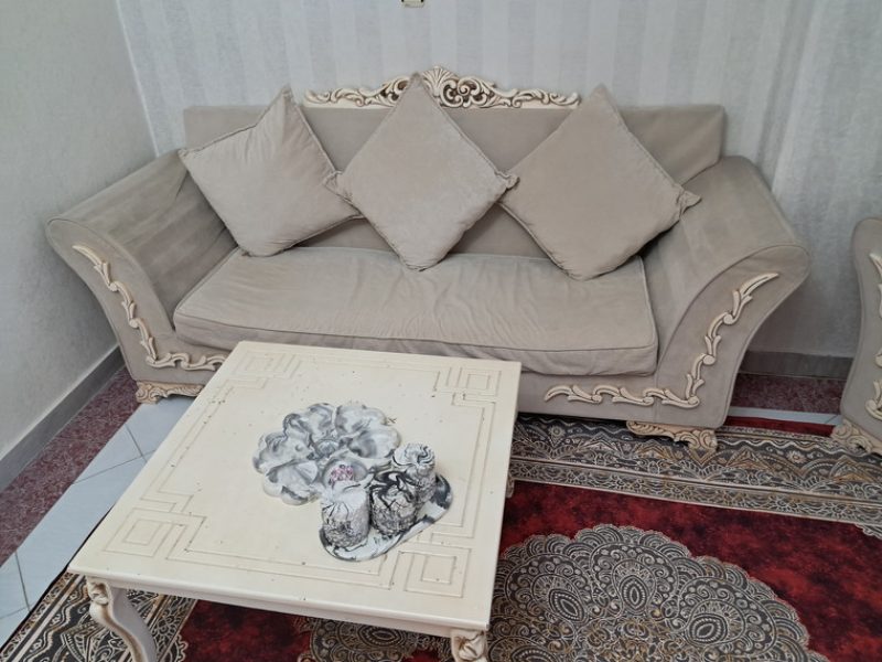 یک کاناپه سه نفر.یک مبل ژورنالی دو نفره و دو صندلی تک.یک جلو مبلی و یک عسلی