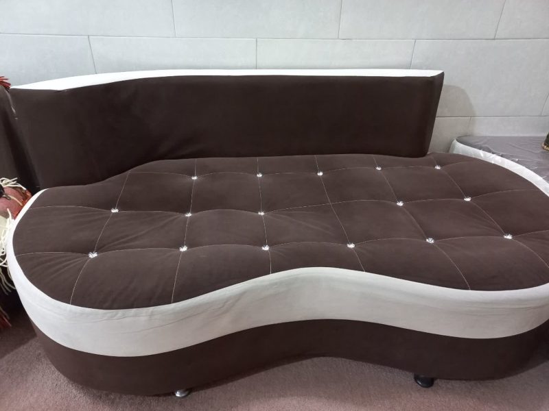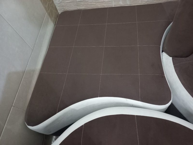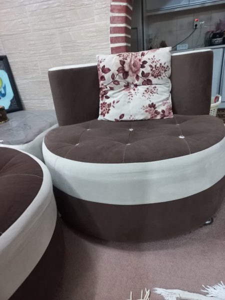 مبل شیک ۹ نفره تمیز ،پارچه ای ،رنگ قهوه ای با میز وشیشه دودی