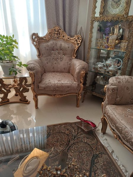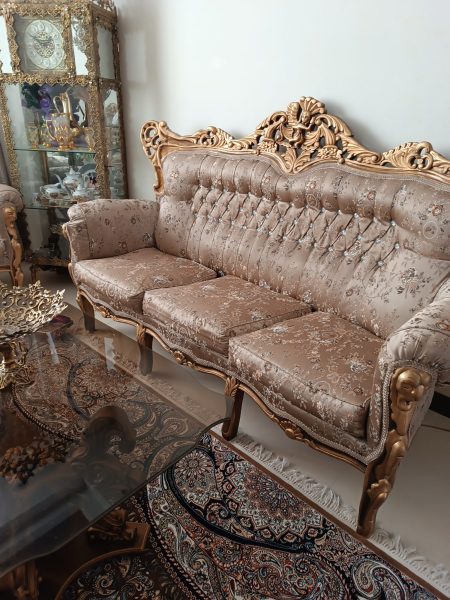 مبل استیل هفت نفره و دو میزبان و جلو مبلی و دو عسلی