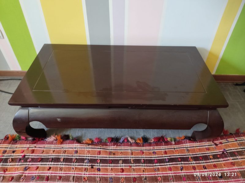 مبل کلاسیک ترک آجری رنگ هفت نفره با میز چوبی مستطیلی