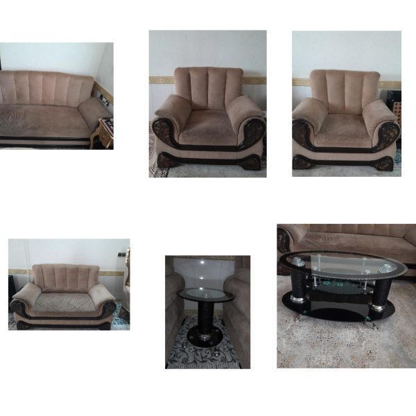مبل راحتی هفت نفره،رنگ قهوه ای روشن ، به همراه سه عسلی