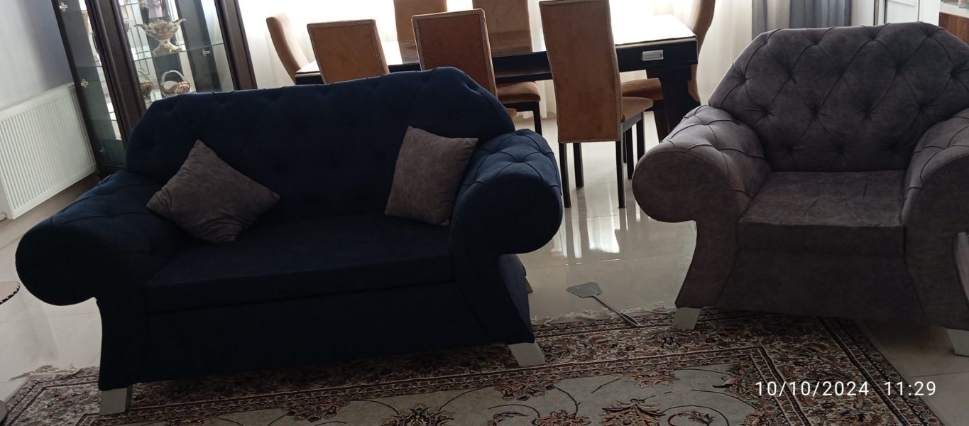 مبل ۷نفره طوسی سورمه ای در حد نو