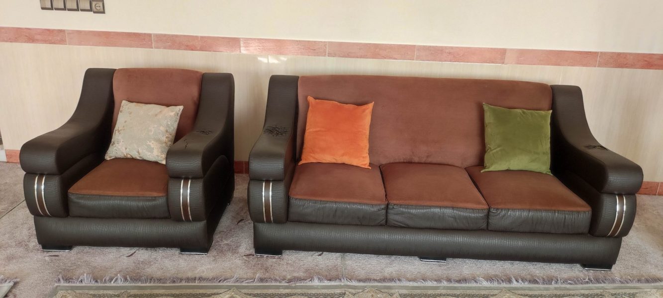 مبل 7نفره .جنس پارچه ترک اصل بدون فرو رفتگی و سایدگی،پارچه مبل در حد نو میباشد،همراه با کوسن