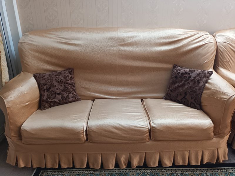 یک دست مبل ۷ نفره راحتی و روکش مبل همراه با ۴ میز عسلی