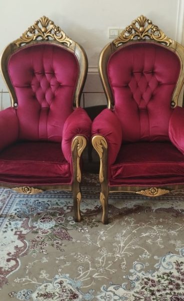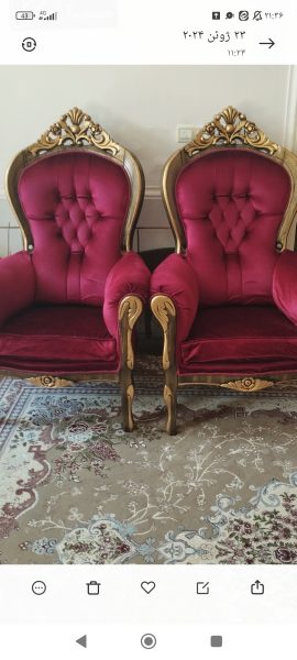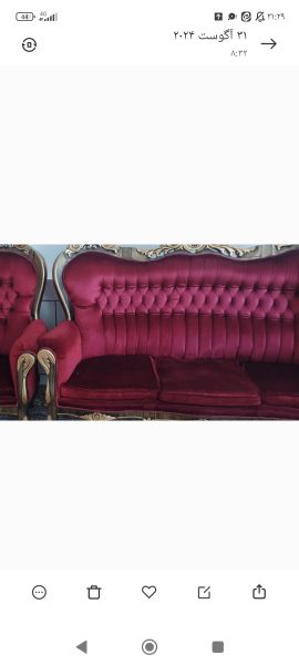 مبل سلطنتی 8نفره رنگ زرشکی تیره همگی سالم هستند با سه عدد میز