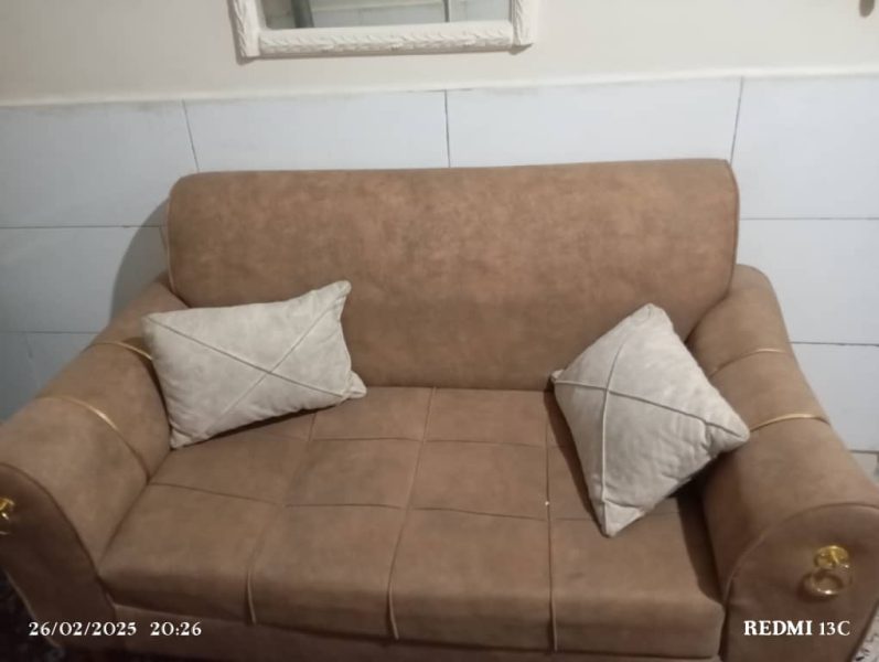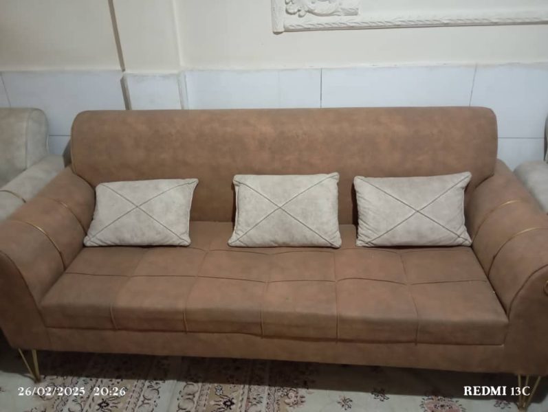 مبل 7نفره رنگ شیری و قهوه ای همراه میز