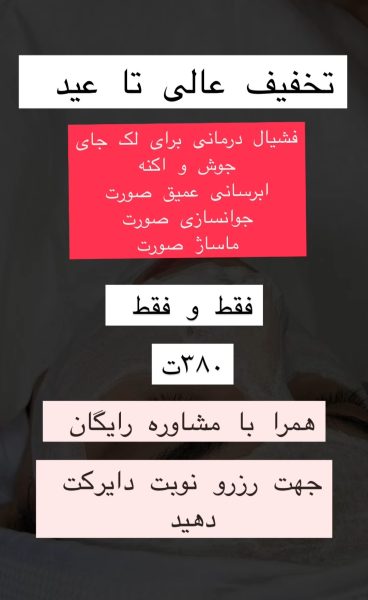 به چند مدل برای فیشیال نیاز دارم صورتتون جوش و لک داشته باشه اگر هم نیست مشکلی نداره هزینه مواد فقط گرفته میشود 380 هست