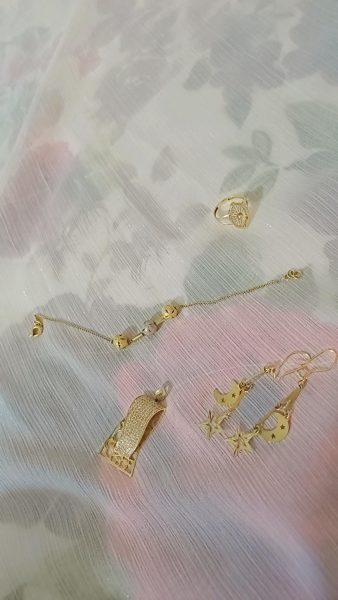 طلا ها زیاد استفاده نشدن دستبند حدودا سه گرم و خورده پلاک ۶گرم گوشوار دو گرم و خورده انگشتر ۱گرم و ۶۰۰ پلاک فاکتور نداره ولی کد ملی کپی کد ملی میدم برا این ک خیالتون راحت شه همگی ۱۰۰بالا تابلو