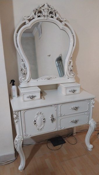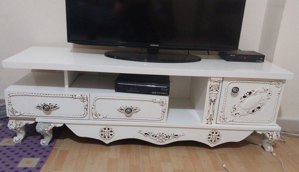 سالم فقط پایه های میز تلویزیون یه خورده ریخته چون روپلاستیک رنگ زدن ریخته از اول همین بوده