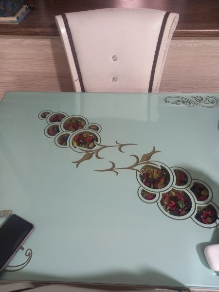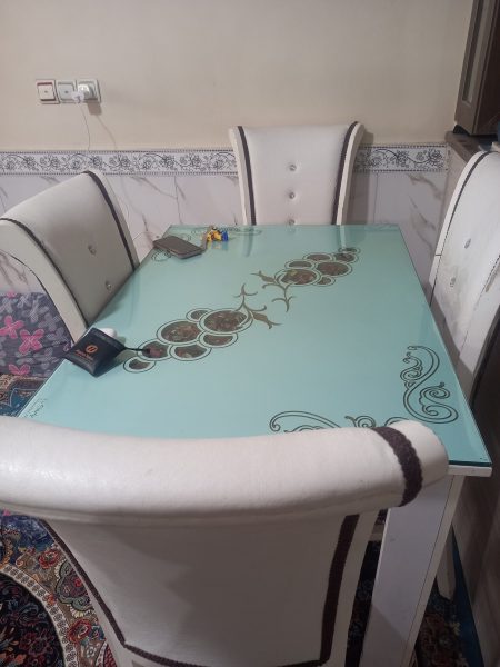 کارکرده میباشد قیمت پایین گذاشتم استفاده زیادندارم شیشه ی میزوپایه های صندلی ها سالم فقط رنگ پریدگی دارد