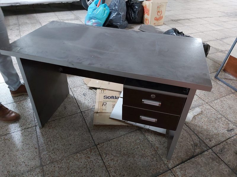 میز اداری رنگ قهوای ام دی اف دارای دو کشو کاملا سالم