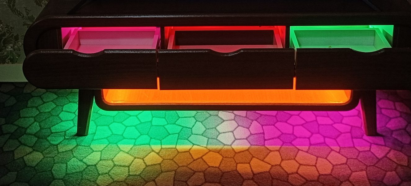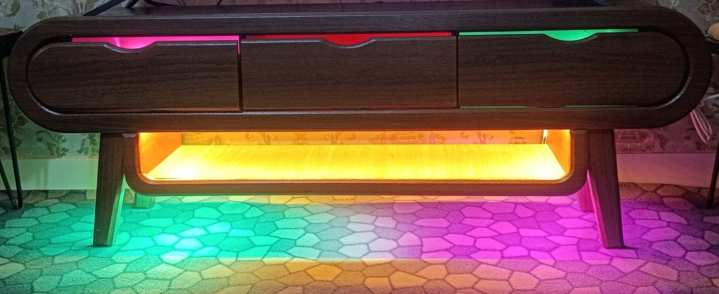 میز تلویزیون با نور مخفی رنگارنگ تمیز بدون خط و خش کاملاً سالم به علت مهاجرت