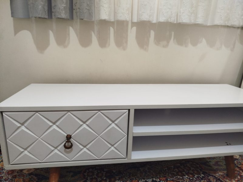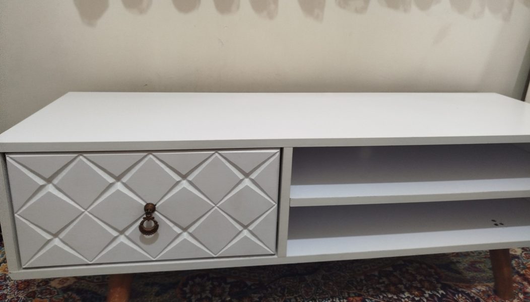 میز تلویزیون سفید بدون رنگ شدگی درحد نو کاملا سالم بایک کشو سالم فروشی در تهران