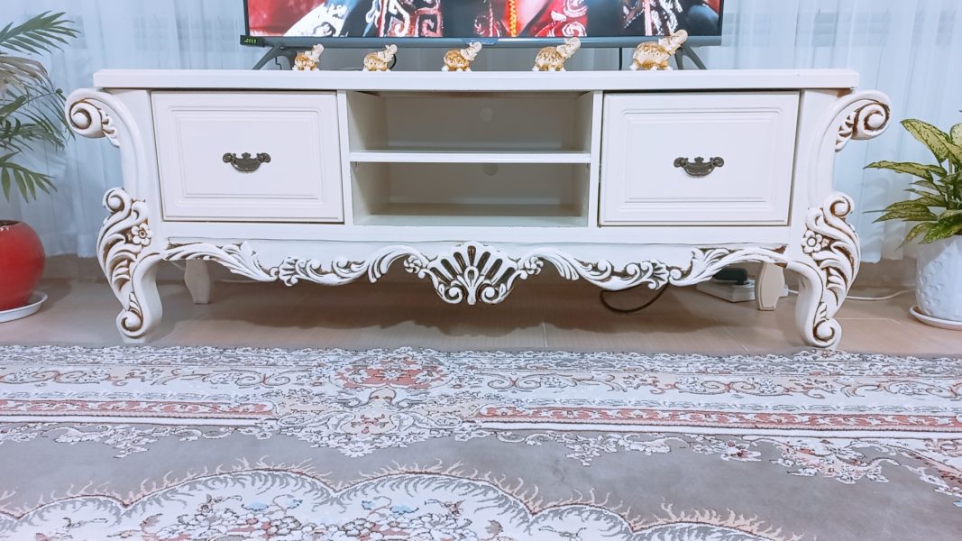 میزتلویزیون ازجنس چوب هست.میزکنسول دوطبقه بزرگ و جاداربرای نگهداری وسیله داره.جاکفشی سه در دارد که درهرکدام چهارطبقه وجوددارد ویک کشو هم برای جاگذاری وسیله های کوچیک وجوددارد.تمام وسایل نو هستن،هیچگونه خراش وخط خوردگی در رنگ وسیله هاوجودندارد.وسیله هابصورت تکی هم بفروش میرسه.