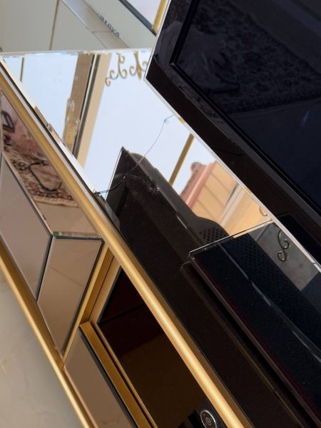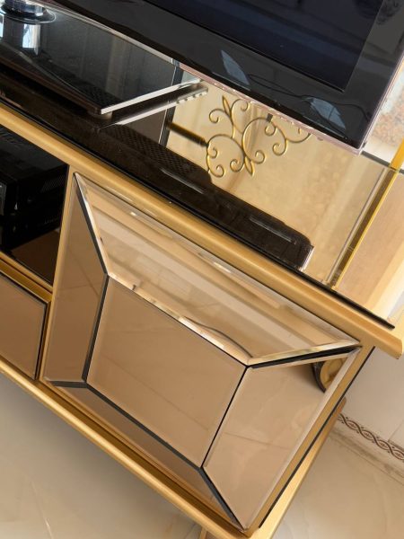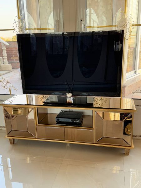 میز تلویزیون و اینه کنسول شیشهای شامپاینی