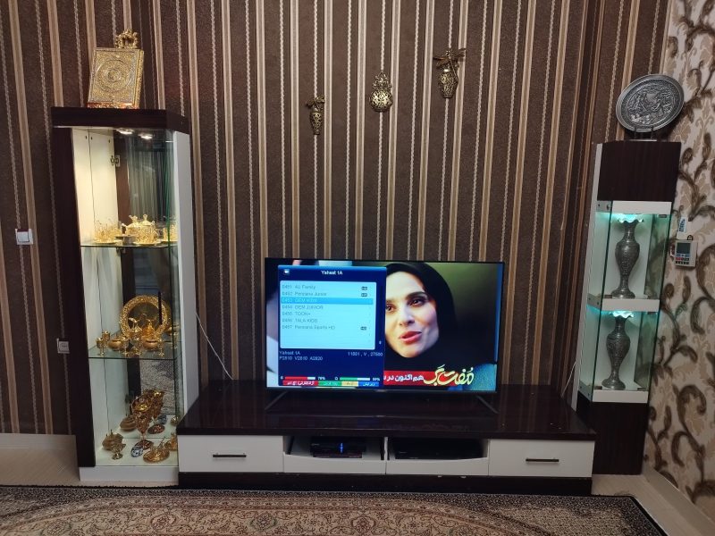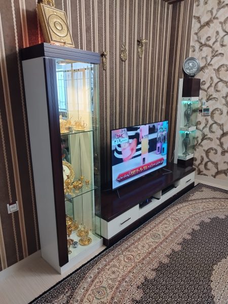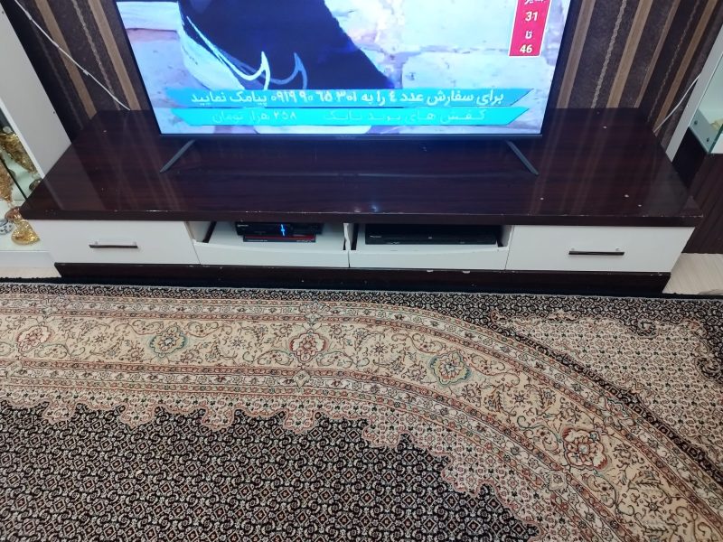 میز تلویزیون و بوفه شیک و تمیز . که صفحه پشتی هم که از جنس خودش است دارد که میتوانید تلویزیون را هم روی آن نصب کنید ست کامل است که خودمان آن را جدا کرده ایم و همه قطعاتش موجود است و خودتان میتوانید دوباره همه را به هم وصل کنید