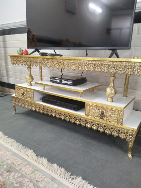 ویترین و میز تلویزیون سالم بدون تغییر رنگ و سیاه شدگی تمیز وشیک برای جهزیه بوده کلا چند ماه استفاده شده جنس تمام برنج نیست