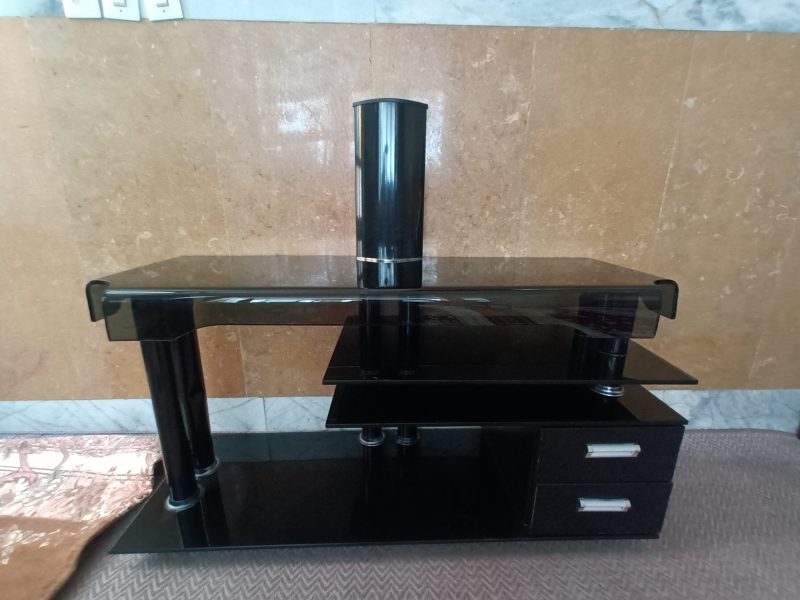 میز تیوی شیشهای بسیار تمیز، بدون شکستگی و خط و خش، در حد نو. طراحی زیبا و مناسب دکور مدرن. مناسب انواع تلویزیون تا سایز بزرگ.